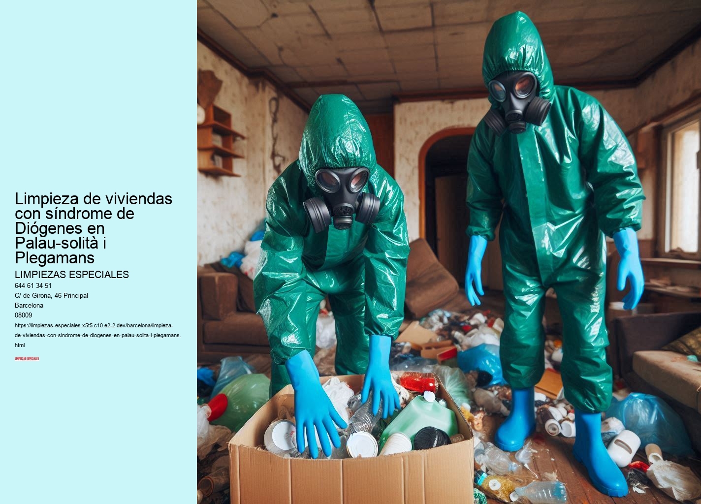 En Limpiezas Especiales Palau-solità i Plegamans, somos expertos en abordar situaciones de limpieza extrema, incluyendo el síndrome de Diógenes. Normatives de seguretat Entre nuestros servicios se encuentran: