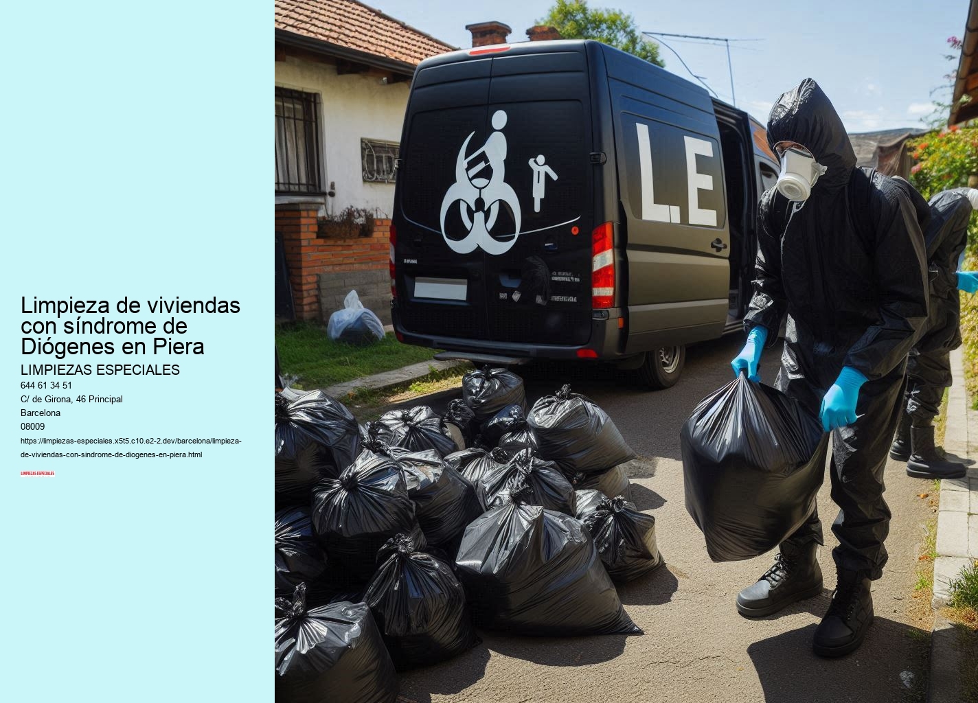 En Limpiezas Especiales Piera, comprendemos la gravedad y complejidad del síndrome de Diógenes. Sabemos que enfrentar una situación de acumulación extrema puede ser abrumador y emocionalmente agotador. Nuestro objetivo es ofrecer la solución profesional y humana que necesita para devolver la habitabilidad y seguridad a su hogar. Con años de experiencia y un equipo altamente capacitado, estamos preparados para abordar cualquier desafío de limpieza, garantizando resultados excepcionales y una atención personalizada.